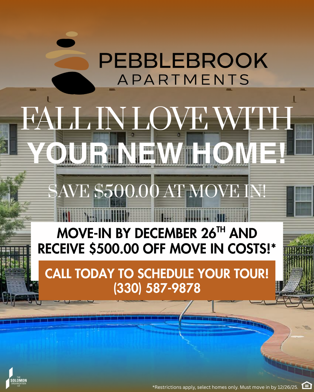 Comfort, convenience, and style are just a few of the features you'll find here at Pebblebrook Apartments. Our community is located in beautiful Kent, Ohio, and is only a quick drive from irresistible entertainment, local dining, and shopping destinations that are sure to please. With easy access to Hwy 59 and 76, your stressful commute will be a thing of the past. Pebblebrook Apartments has something for everyone and is an ideal place to call home!